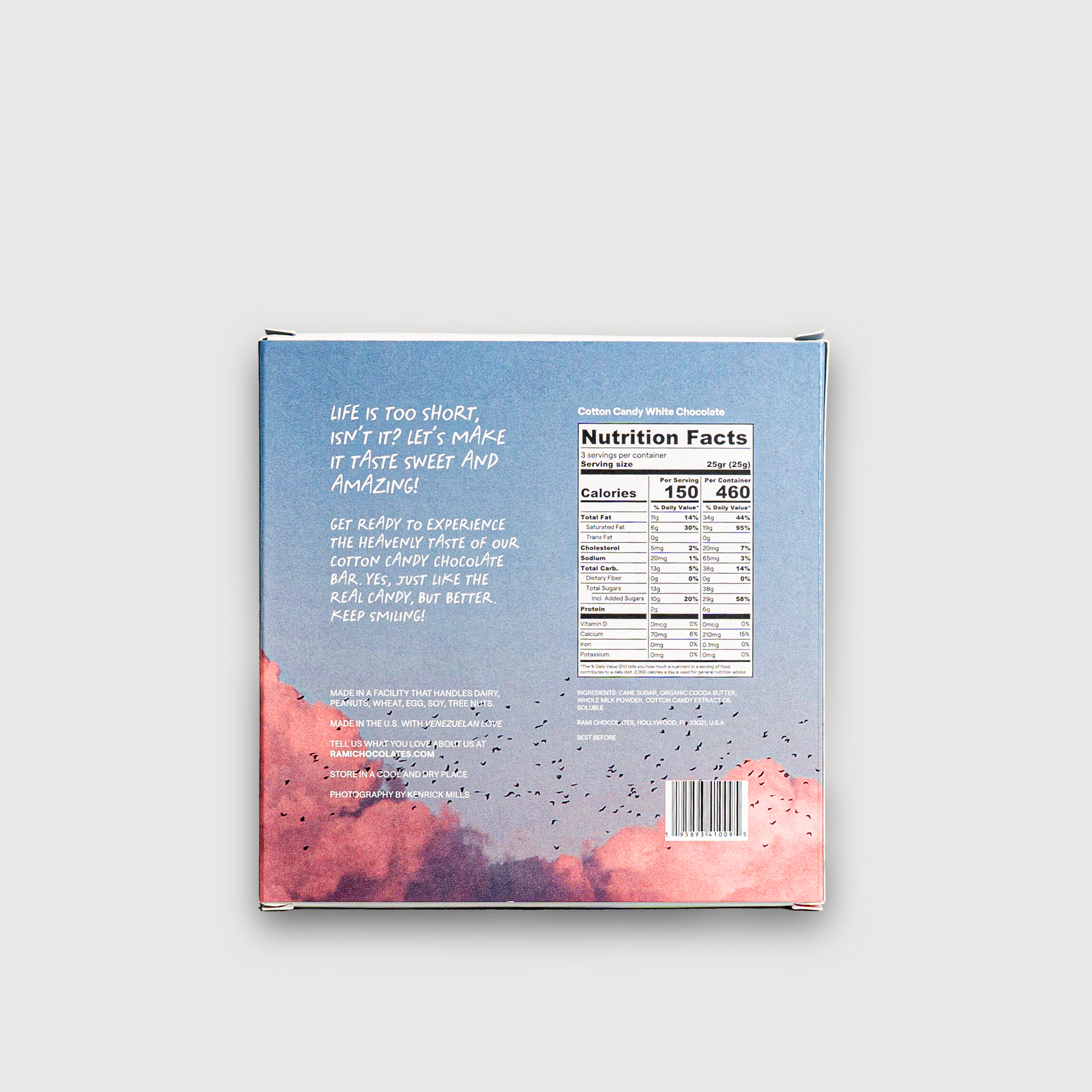 Let’s make life taste sweet and amazing with the heavenly taste of our cotton candy chocolate bar. Get ready for this experience!
